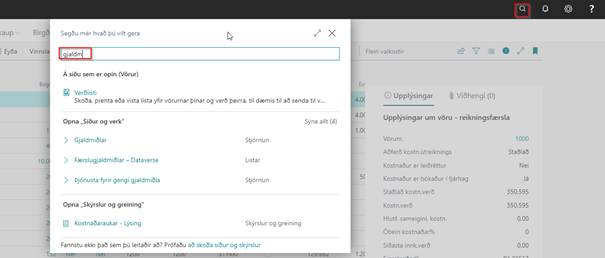 Kerfishlutar sem eru minna notaðir og e.t.v.. ekki í valmynd er hægt að finna með leitinni sem er efst í hægra horni gluggans.