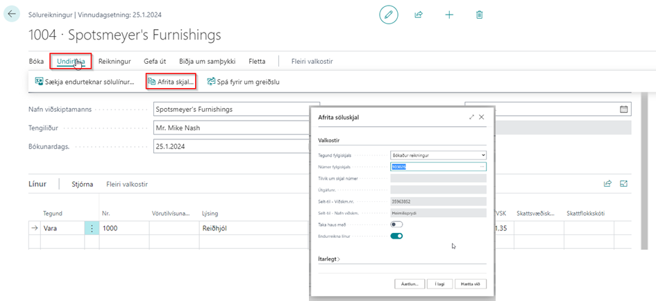 Gera sölureikning