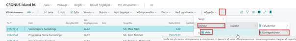 Reglulega þarf að senda yfirlit á viðskiptamenn. Í viðskiptamannaglugga má finna Yfirlit. Þá opnast eftirfarandi skýrslugluggi